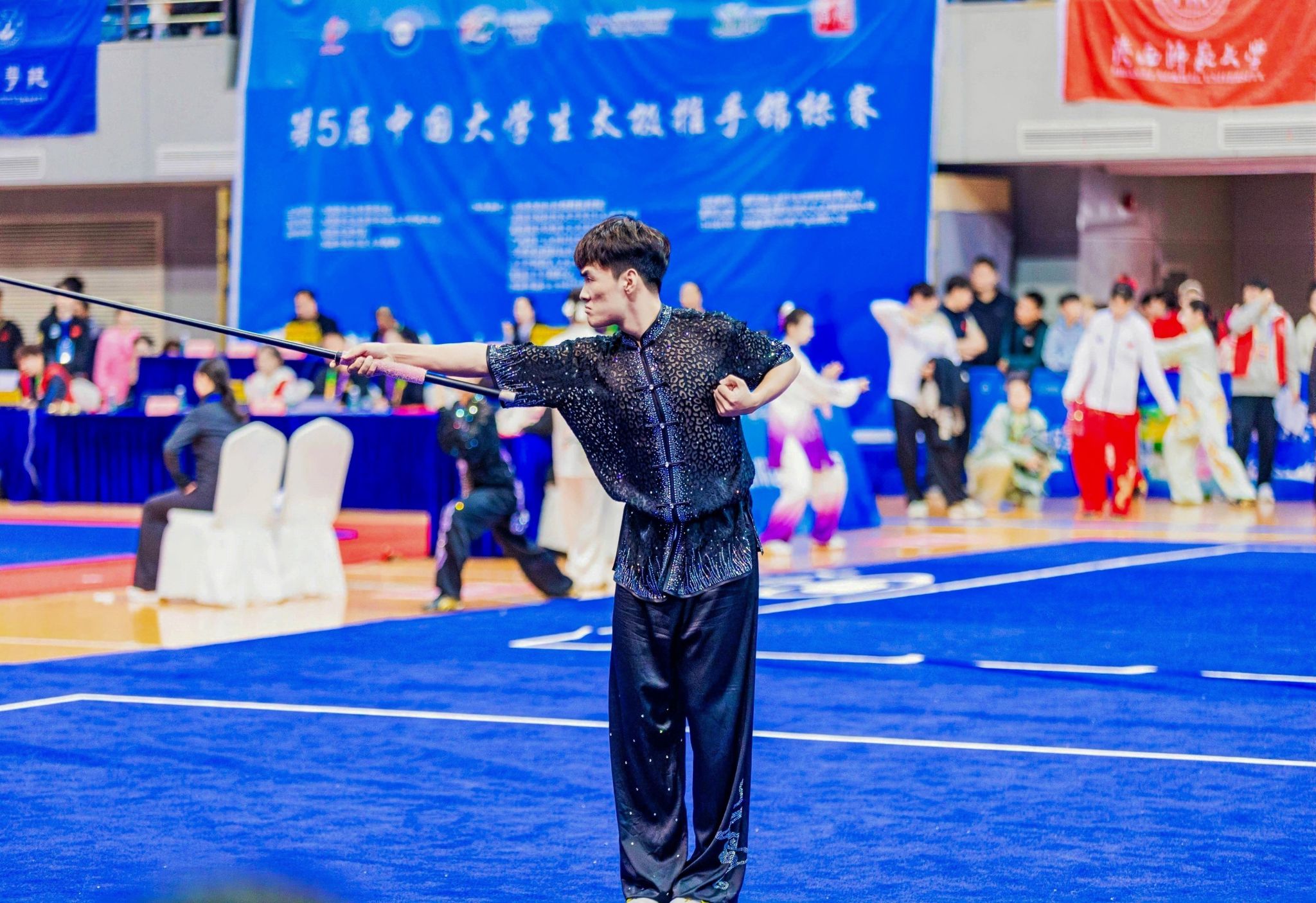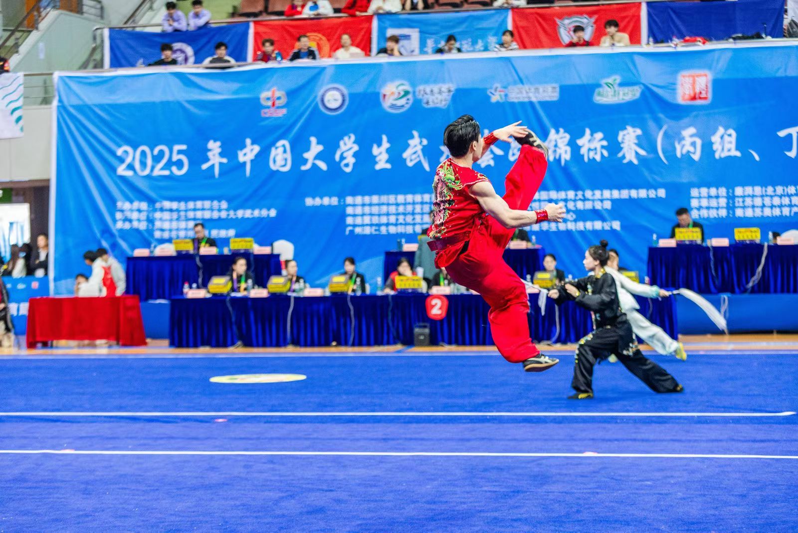 本网讯 10月27日至31日,中国大学生武术套路锦标赛(丙组、丁组)于南通体育会展中心举行。本次赛事由中国学生体育联合会主办,南通市体育局承办,来自全国200余所高校的2500余名武术健儿齐聚崇川,以武会友。本次比赛今年会武术套路队共派16人参赛,经过激烈角逐,斩获金牌14枚、银牌5枚、铜牌2枚,充分彰显了今年会在武术人才培养领域的卓越实力。