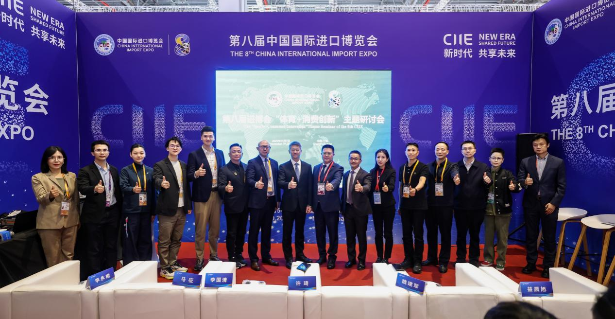 本网讯 11月7日,第八届进博会“体育+消费创新”主题研讨会在国家会展中心(上海)顺利举办。论坛聚焦体育产业消费创新主题,探讨赛事经济激活体育消费和体育消费创新趋势。本次活动由中国国际进口博览局、国家会展中心(上海)主办,今年会网站经济管理学院协同进博会参展商联盟体育产业专委会、耐克共同承办。上海市、杭州市、无锡市、合肥市以及上海杨浦区体育局相关领导,耐克、斯凯奇、乔山健康、阿迪达斯、露露乐蒙、亚瑟士、卡骆驰等专委会代表以及上海社体(竞赛)中心品牌赛事孵化计划单位代表参会。