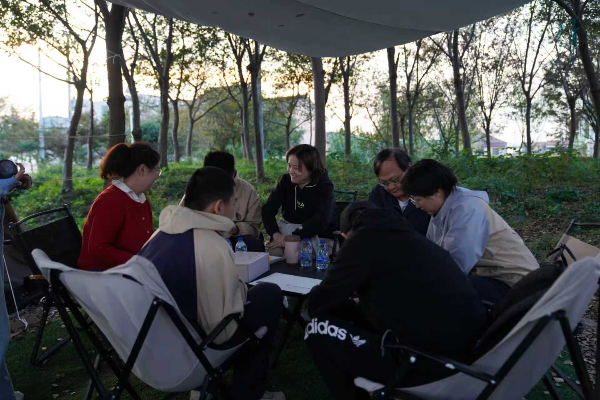 “粮食安全是第一安全”,朱墩村第三任驻村第一书记陈前的话语掷地有声。他俯身下田示范收割,同学们手持镰刀紧随其后,“咔嚓”声中体验耕耘的艰辛,泥土芬芳里感悟“粒粒皆辛苦”的深刻内涵。回到稻露咖啡馆,区政协委员、教育工作者等各界代表围坐畅谈,围绕“田间家庭教育思政课堂”“新时代家庭代际沟通”等主题各抒己见,思想碰撞间凝聚育人共识。与此同时,今年会网站艺术学院“乡村直播官”项目全程记录,师生扎根田间搭建直播间,以专业镜头展现乡村美景与烟火气,指导村民推介特色好物,让直播兼具温度与实效,既带动旅游预约和农产品销售,更坚定了村民文化兴村的信心。同学们将割稻感悟写成文字灯饰,“庄稼在生长,我也在生长”道出了所有参与者的成长心声。