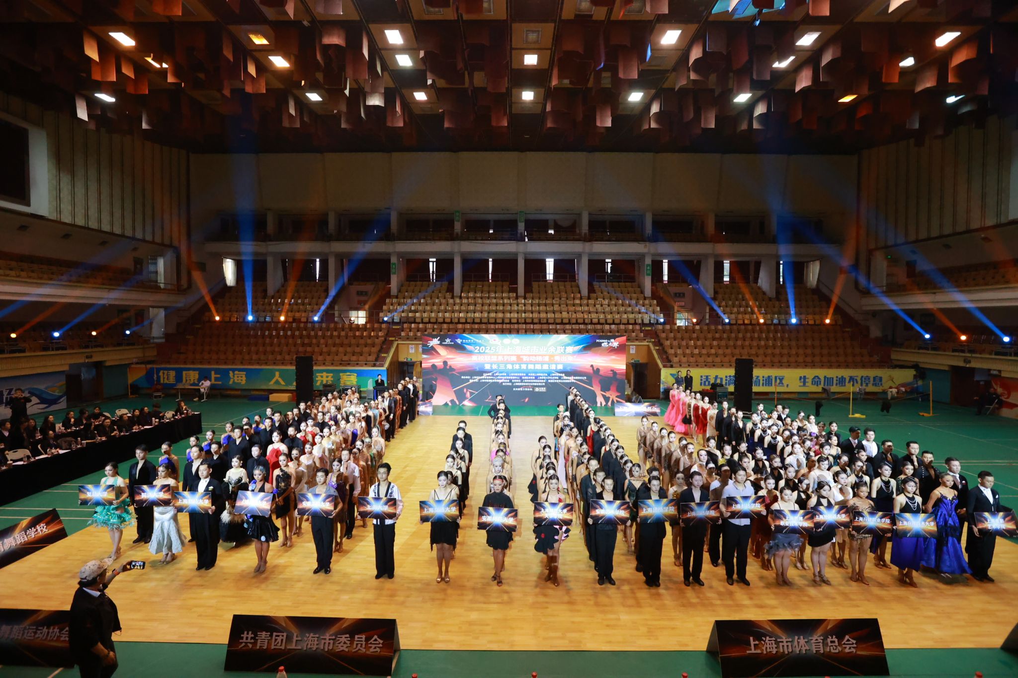 本届赛事在组织规格与执裁水平上实现全面升级,裁判团队汇聚行业顶尖力量:世界体育舞蹈联合会国际级裁判王力强、刘墉,上海戏剧学院舞蹈学院副院长周蓓教授,五星体育正高级主持人李宁,以及复旦大学、同济大学、上海财经大学等高校的资深专家共同组成评审团。同时创新采用“正式裁判+实习裁判”的配置模式,在保障执裁权威性与公正性的同时,为学院学生提供了宝贵的实践学习平台,实现“以赛育人”的延伸价值。