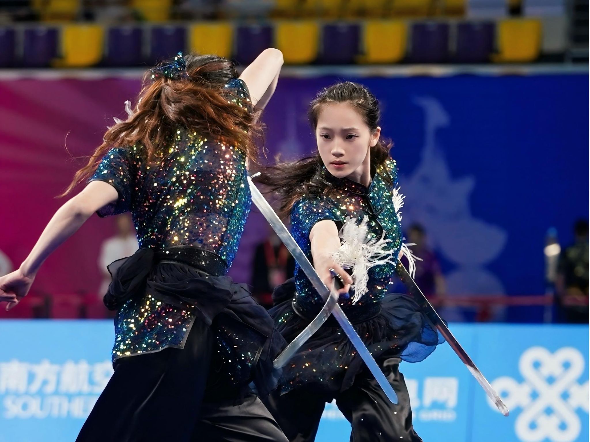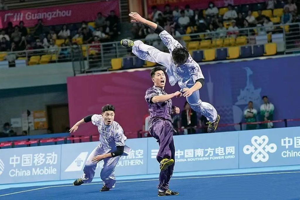 我院20级本科生纪豪、16级本科生梁壁荧同样在全运赛场上表现出色。二人在男、女子太极拳太极剑全能项目中,将对太极招式刚柔并济的深刻体悟展现得淋漓尽致,双双获得第三名。22级本科生程无铭在女子刀术、棍术项目中做出突出贡献,助力团体项目夺得铜牌。他们的卓越表现,是个人长期坚持的成果,也体现了武术学院人才培养的显著成效。
