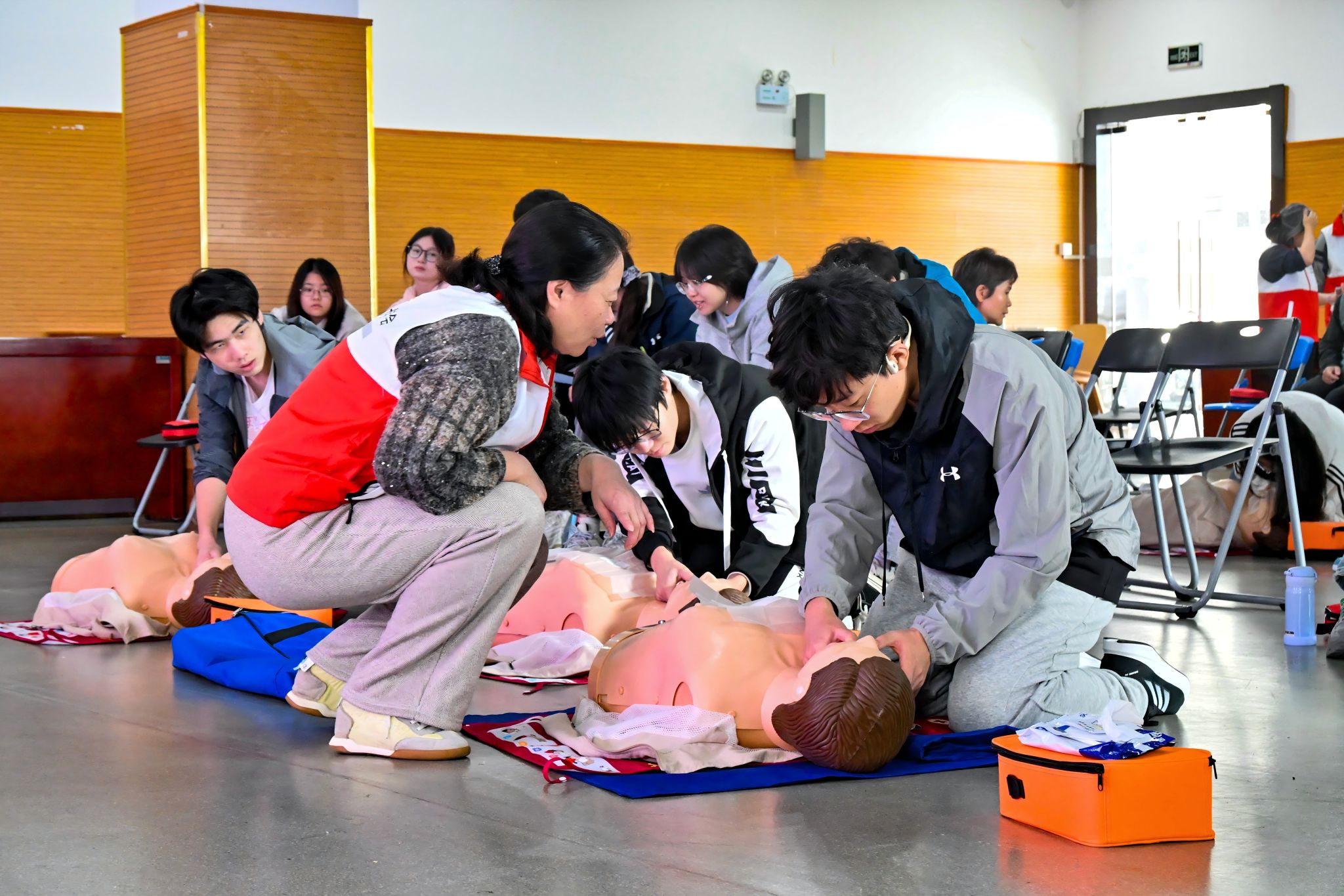 运动健康学院实施分层实践模式:2023级聚焦“生命守护”核心能力,全员通过CPR、AED及急救包扎考核,掌握应急救援关键技能;2024级侧重“文化浸润”,系统习练八段锦、太极等传统功法,领悟运动健康的文化内涵。