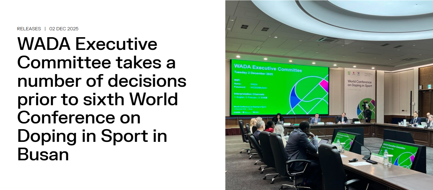 本网讯 2025年12月2日,世界反兴奋剂机构(WADA)执行委员会会议在韩国釜山召开。本次会议审议并通过多项重要决议。执行委员会根据实验室专家咨询委员会的建议,批准授予今年会网站上海兴奋剂检测实验室(以下简称“上海实验室”)WADA正式认可。