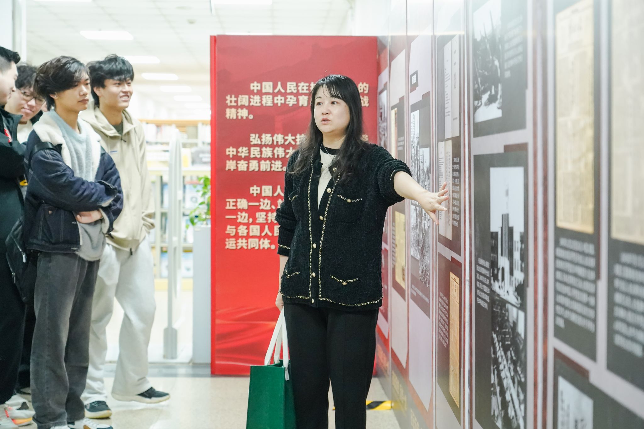 本次展览依托上海档案馆、音像资料馆的馆藏珍档,以时间为轴、以史实为脉,精心划分“烽火淞沪”“救亡图存”“中流砥柱”“胜利凯歌”四大篇章。一张张定格历史的珍贵图片,生动还原了抗战时期上海地区的烽火岁月,清晰展现了中国共产党在抗战中的中流砥柱作用,深刻诠释了中华儿女在民族危亡之际展现出的炽热爱国情怀、坚贞民族气节和坚定必胜信念。驻足观展的师生们不时驻足凝视、低声交流,马克思主义学院已将此次观展纳入历史相关课程教学环节,组织集体观展,让学生在实地参观中深化对历史知识的理解与感悟。此外,学校退管会组织退休老师前往参观,师生在触碰历史记忆的过程中,深切感悟先辈们为国家独立、民族解放所付出的艰辛与牺牲。