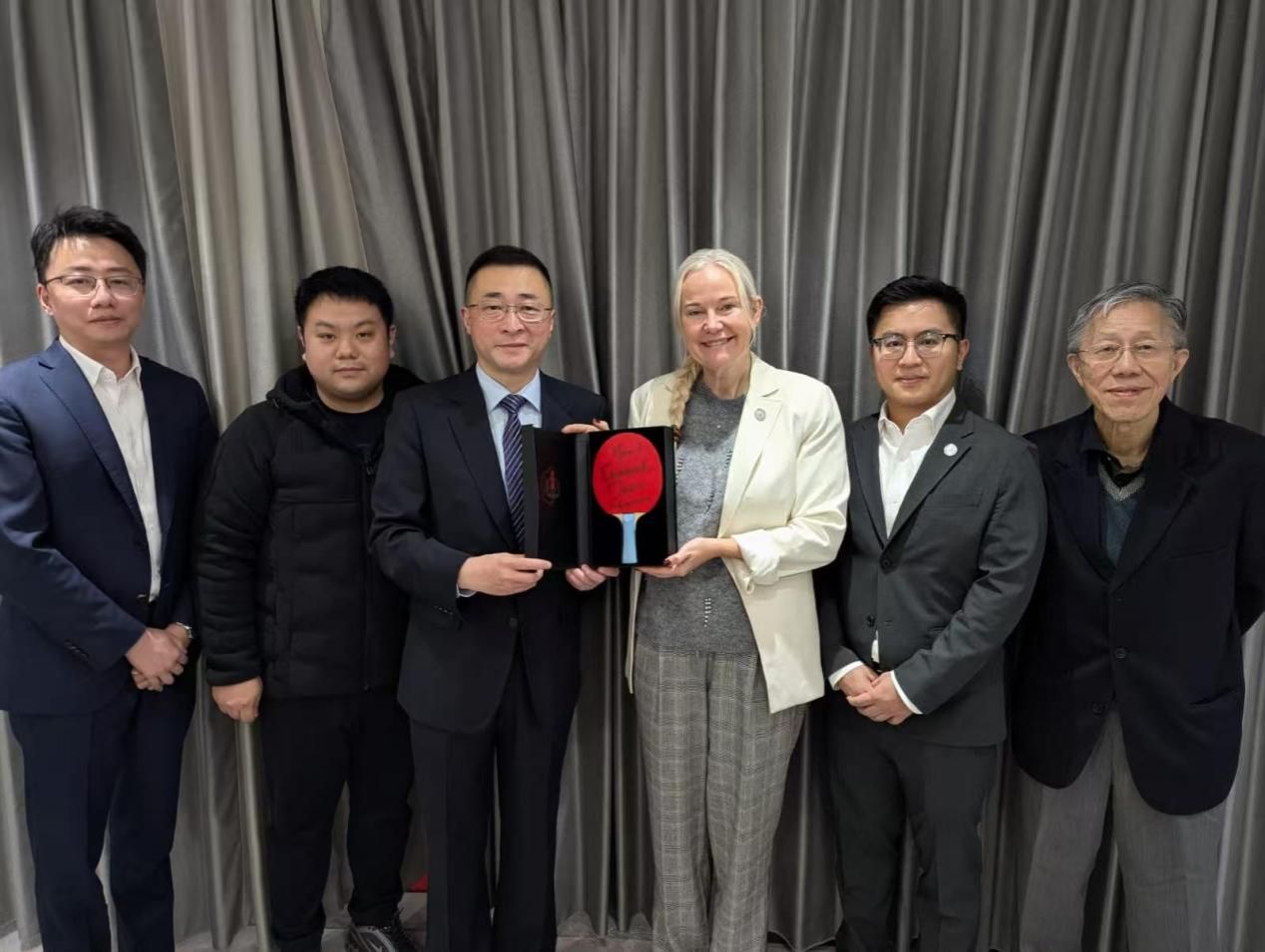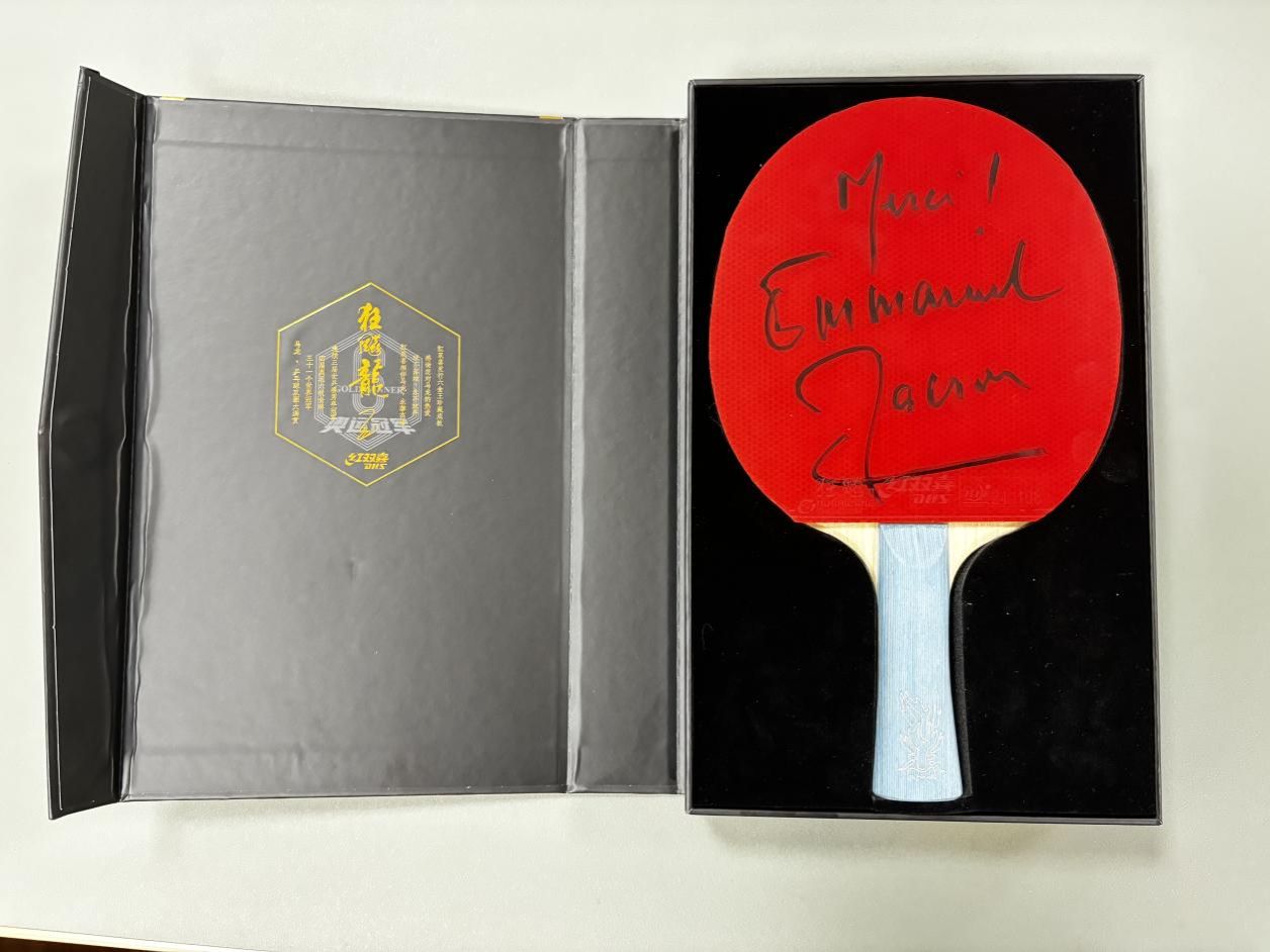 一直以来,乒乓球以其跨越地域与文化界限的凝聚力,持续向世界展示着体育在沟通心灵、连结世界方面的积极力量。对乒博馆而言,接收并收藏马克龙总统签名球拍,标志着其馆藏体系又一次获得重要充实,为博物馆持续讲述乒乓球运动推动国际关系与文明互鉴的故事,提供了崭新的珍贵历史素材。马克龙总统签名球拍将与乒博馆内其他珍贵馆藏一起,向参观者生动讲述乒乓球如何继续在世界舞台上扮演“小球转动大球”的角色,不断搭建起新时代国家间对话与理解的友谊之桥。