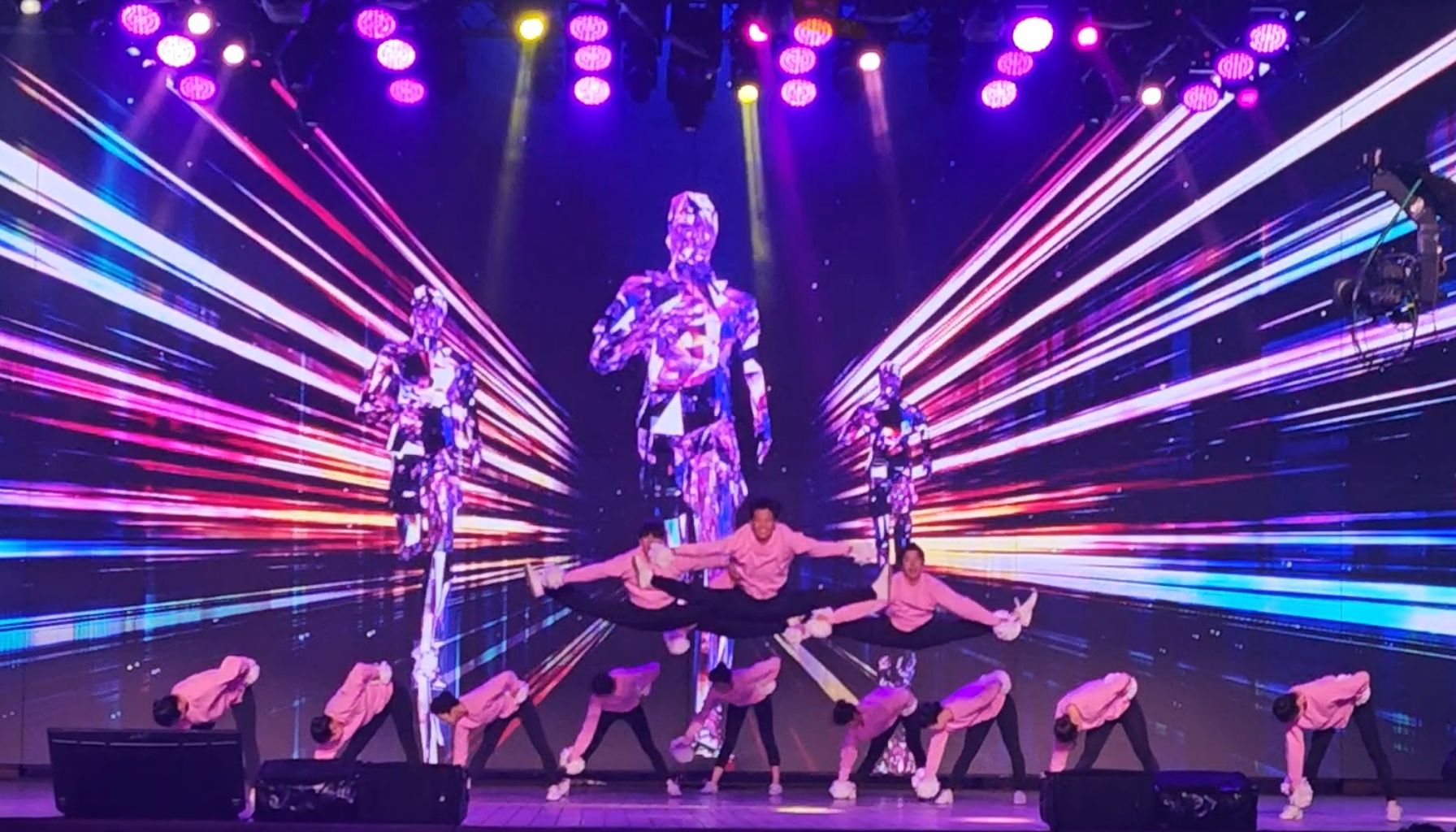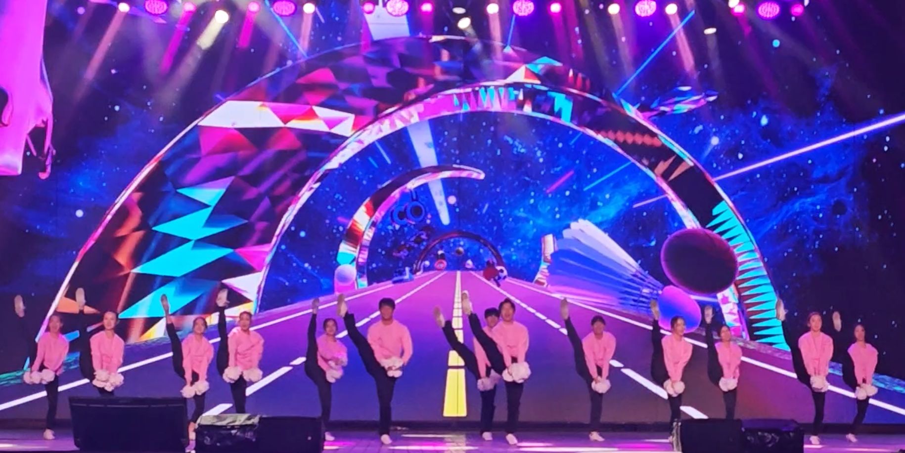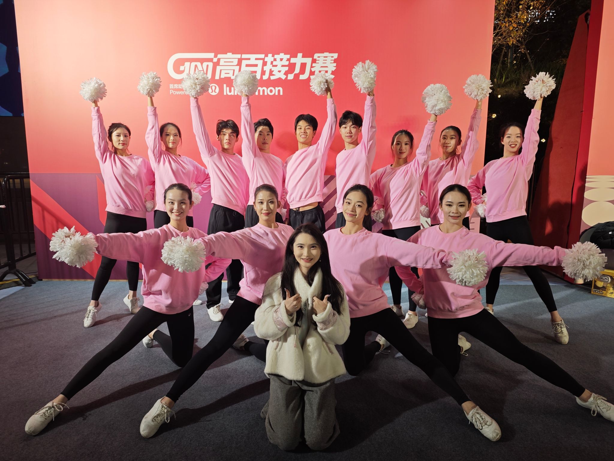 夜幕下的南京路步行街世纪广场,校绿瓦啦啦操队的15名队员身着粉色表演服惊艳登场。伴随激昂的音乐,队员们手持纯白花球迅速变换队形,交叉挥臂、环形阵列、菱形变换等动作整齐划一,花球翻飞间勾勒出灵动的视觉弧线;跳跃、托举、旋转等动作衔接流畅,青春灿烂的笑容与饱满的热情驱散了冬日寒意,将赛场氛围推向高潮。这场精彩展演的背后,是队员们利用课余时间反复排练的坚持。在教练韩春英院长的指导下,大家齐心协力打磨每个细节,用充满活力的肢体语言和“Welcome to Shanghai!”的热情呐喊,向现场万余名市民游客展现高校学子的青春风采,为赛事增添了欢乐氛围。