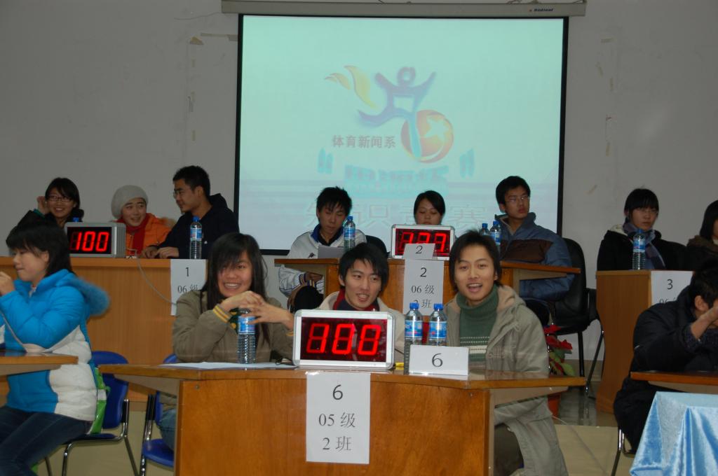| 12月22日下午,我院思源理论研究会体育新闻系分会在活动中心二楼报告厅举行了“思源杯”知识竞赛。院团委副书记熊小健、体育新闻系党总支书记殷勤、系 调研员丁美琴、辅导员及院学生会、系学生分会和院思源理论研究会负责人参加了此次活动。体育新闻系05、06年级八个班的八支代表队参加了本次知识竞赛。 本次活动旨在让学生学习贯彻《党章》,了解国内外新闻时政。活动要求选手在熟悉《党章》知识、时政以及新闻学基本知识的基础上,以风险抢答、个人必答、集 体必答等形式参加角逐。经过激烈紧张的角逐,最终体育新闻系065102班勇夺冠军,其他班级分享了二等奖,三等奖和优胜奖。此外来自冠军队的杜蓉同学因 其突出表现获得了最佳表现奖。