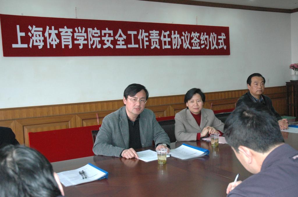 会上,签约单位代表运动科学学院、竞技体校、后勤服务中心三家单位介绍了各自在安全工作方面的情况。