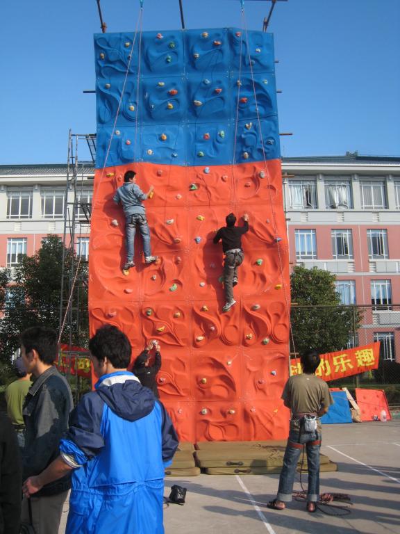 | 金秋送爽,丹桂飘香。为深入贯彻落实“外塑形象,内聚人心,弘扬文化,激励创新”的上海体育学院55周年校庆精神,校秋季运动会在一派和谐、喜庆的气氛中拉开了帷幕。 在今年的运动会中,由体育休闲系社体教研室负责的抖空竹、地滚球、定向越野、单人跳绳、高尔夫推杆和攀岩等休闲体育项目引起了院领导和广大师生极大的关注,教师、学生积极参与竞赛,团结协作,努力拼搏。最富有刺激和挑战的是今年新增的攀岩项目,它不仅需要强壮身体素质,更强调个人的胆识和谋略,老师和同学们对此抱有极大的热情和兴趣,纷纷大胆尝试,挑战极限,超越自我。