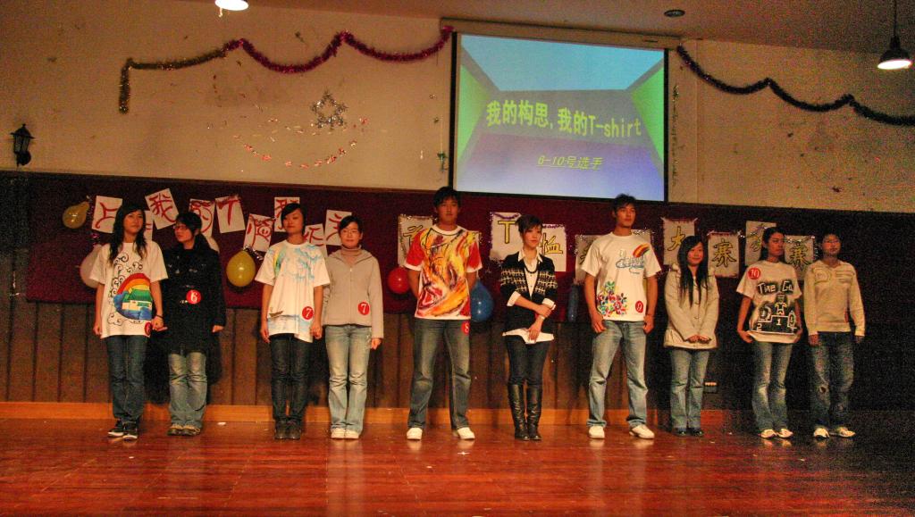 | 11月20日晚,由院学生会主办的“我的T-shirt我做主”—T-shirt彩绘大赛决赛在活动中心舞厅举行。 此次大赛以展现自我、放飞个性为宗旨,要求参赛选手在限定时间内充分发挥自己的想象并对T-shirt进行图案设计,色彩搭配。共有百余件设计作品报名参赛,经过评审10件作品最终入围决赛。