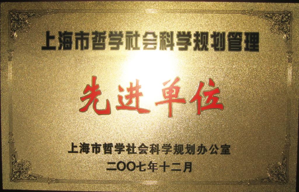 日前,在由上海市哲学社会科学规划办公室举办的上海市高校、研究所科研处长会议上,对近年来在国家社科基金项目和上海市社科规划管理实践中勤奋工作、努力探索、不断开拓,做出贡献的上海市12个社科研究单位科研管理部门进行表彰,我院由于管理评价综合指标位于前六,荣获“上海市哲学社会科学规划管理先进单位”称号,授予铜牌奖励。