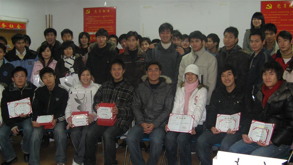 | 1月15日下午,体训练学院05体教举行了“06-07学年先进表彰仪式暨冬季送温暖活动”。05体教辅导员盛立恒以及体教05年级获奖同学和贫困生参加了此次活动。 回顾06-07学年,05体教硕果累累,喜事多多,涌现出了一大批的先进个人和集体。包括院优秀学风标兵班、优秀学生、优秀学生干部、特等奖学金、国家奖学金、上海市奖学金、校园文化先进个人、优秀志愿者等。获得特等奖学金、特奥优秀组织奖、被作为“十百千工程”市级培养对象的倪琦杰同学,以及获得英语单相奖的居祥伟同学,分别以自身成长的经历作了真挚而发人深省的精彩发言,让在场广大学生深感启发。
