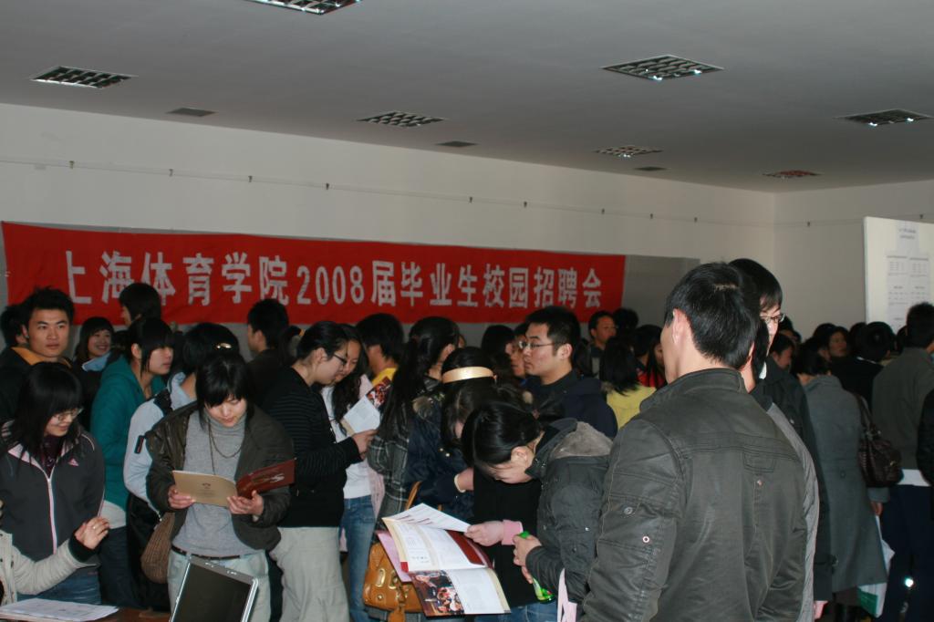 | 时维三月,春潮涌动。为了促进我院毕业生更好、更充分地就业,进一步做好我院的就业指导工作,我院于2008年3月5日下午1点30分在活动中心三楼举行了2008届毕业生第二场校园招聘会。 本次招聘会上到现场招聘的单位约有十多个,除了上海美格菲健身中心等与我院长期联系的单位外,还邀请了美丽田园、加州耀能健身有限公司上海公司等知名单位参与。招聘岗位类型趋向多样化,毕业生就业选择增多。