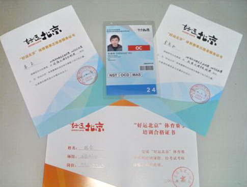 | 4月18号到20号,我院43名志愿者在国家体育场完成了“‘好运北京’竞走和马拉松”测试赛的服务工作。 我院志愿者主要负责在比赛期间使用OMEGA公司的设备进行计时记分、国家体育场内大屏幕的转换以及国际裁判的翻译工作。我们的志愿者在工作岗位上兢兢业业,一丝不苟。在这三天的测试赛中,志愿者顶住了长达6小时的日晒和雨淋,经受住了每天4点钟起床,持续站立超过5小时的考验;经受住了大雨将衣服淋的透湿,仍然微笑服务的考验。尤其是与国际裁判和OMEGA公司工作人员的合作中,他们大方得体,细致周到,赢得了OMEGA公司的高度肯定,同时也得到了国家体育场技术部的充分认可。