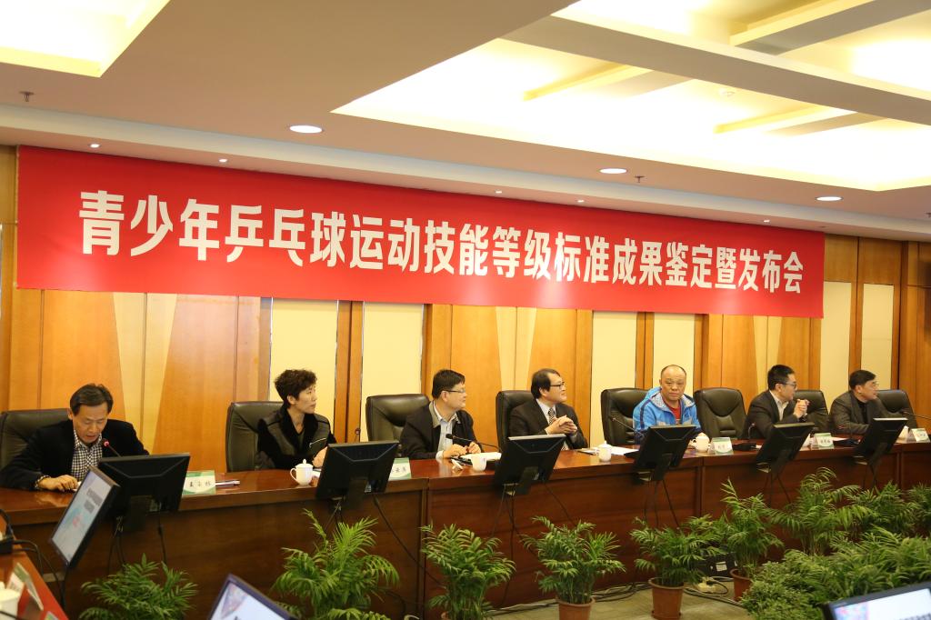 本网讯 2017年4月12日,《青少年乒乓球运动技能等级标准》研制成果鉴定暨新闻发布会在今年会举行。国家体育总局乒羽中心副主任张晓蓬、上海市教育委员会副主任王平、山东省体育局副局长乔云平、上海体育学院院长陈佩杰、国际乒联副主席、中国乒协副主席施之皓,中国乒协副主席、上海乒协会长陈一平等出席发布会。会上,中国乒乓球学院面向社会发布了科研创新成果——青少年运动技能等级标准(乒乓球)。