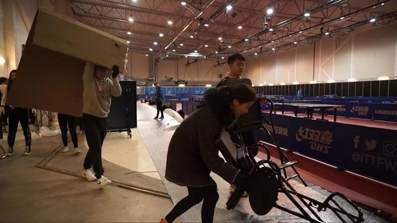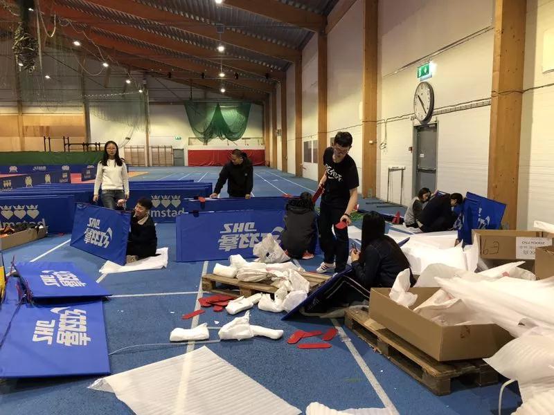 原来,瑞典世乒赛场馆地胶铺设、裁判座椅组装、挡板支架安装、场馆外围栏安装,甚至“搬砖”,都是由12位来自中国的志愿者参与完成的。