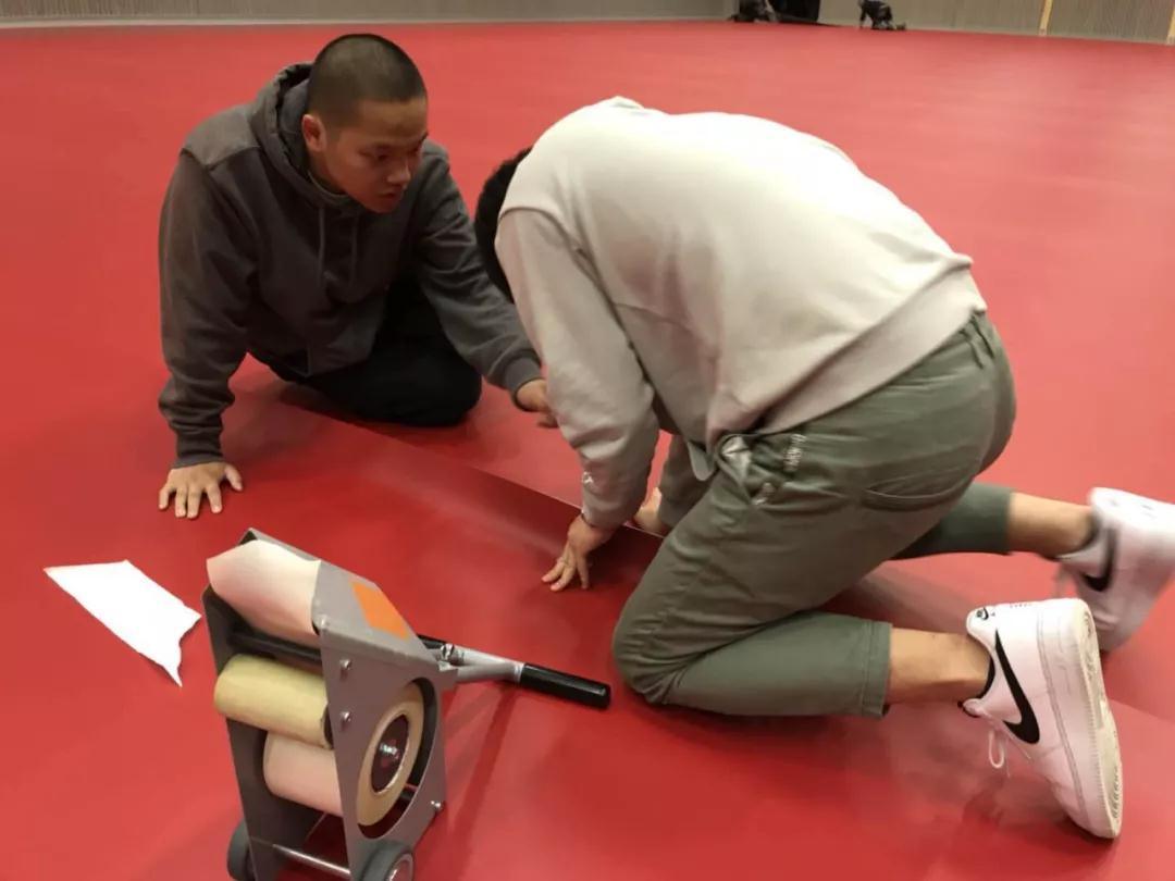 与此同时,志愿者们面对的工作也是大家没有想到的。女生们几个人一起抬成卷的地胶,大家一起搬砖、架铁丝网,还需要徒手拧裁判座椅和挡板的螺丝。学生们的手上起了泡、划出了小口子。除了受伤,心理上的落差才是最可怕的,要知道这些在贴海报的孩子们,其中有4人的论文是上了隔壁学术会议墙报的。