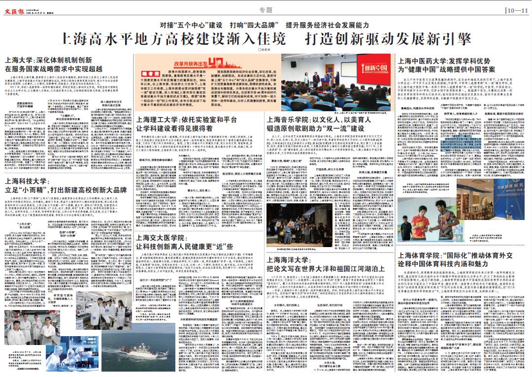 服务国家战略和经济社会发展,深化改革、经验辐射、创新驱动。各试点高校立足长远,紧密对接上海“五个中心”和“四大品牌”发展要求,不断扩大优质高等教育资源供给,取得阶段性成果。即日起,文汇报推出专题报道,分享各校在高水平地方高校建设进程中的特色亮点。在改革开放40周年的时代背景下,解析它们的经验和成果,对于加快一流大学和一流学科建设,办好人民满意的教育,具有重要启迪。