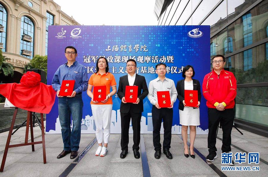 新华网体育5月18日上海电 上海体育学院5月18日在被授予黄浦区爱国主义教育基地的国际乒联博物馆和中国乒乓球博物馆,组织了一场别开生面的思政展示课。期间马克思主义学院的教师代表们被授予中国乒乓球博物馆荣誉讲解员聘书,将以此次授课为起点,探索馆课融合的思政课教学模式。