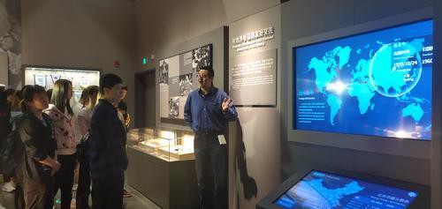 拥有12000余件国内外珍贵藏品的乒博馆,充分展现了国乒的奋进之路和精神内涵,赋予思政课独一无二的时空形式。在乒博馆内这节“行进的课堂”上,担任讲解的不只是馆里的普通讲解员,还有来自上海体育学院马克思主义学院的思政课教师。他们在不同的展区,围绕《国球与中国智慧》、《国球与中国精神》、《国球与中国道路》、《国球与中国外交》、《国球与中国制造》等主题,结合馆内的历史文物和珍贵藏品,给学生们送上了一堂情景交融的思政课。