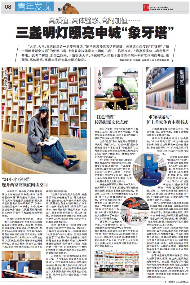 今年夏天,青年报记者就曾实地探访上海高校实体书店,带来“象牙塔里的书香”系列报道并指出,华东师范大学可能是沪上坐拥校园实体书店数量最多的一所高校了,仅中山北路校区就有3家书店。如今,这一说法进一步“坐实”,更重要的是闵行校区的学子也有了高颜值阅读研创空间。