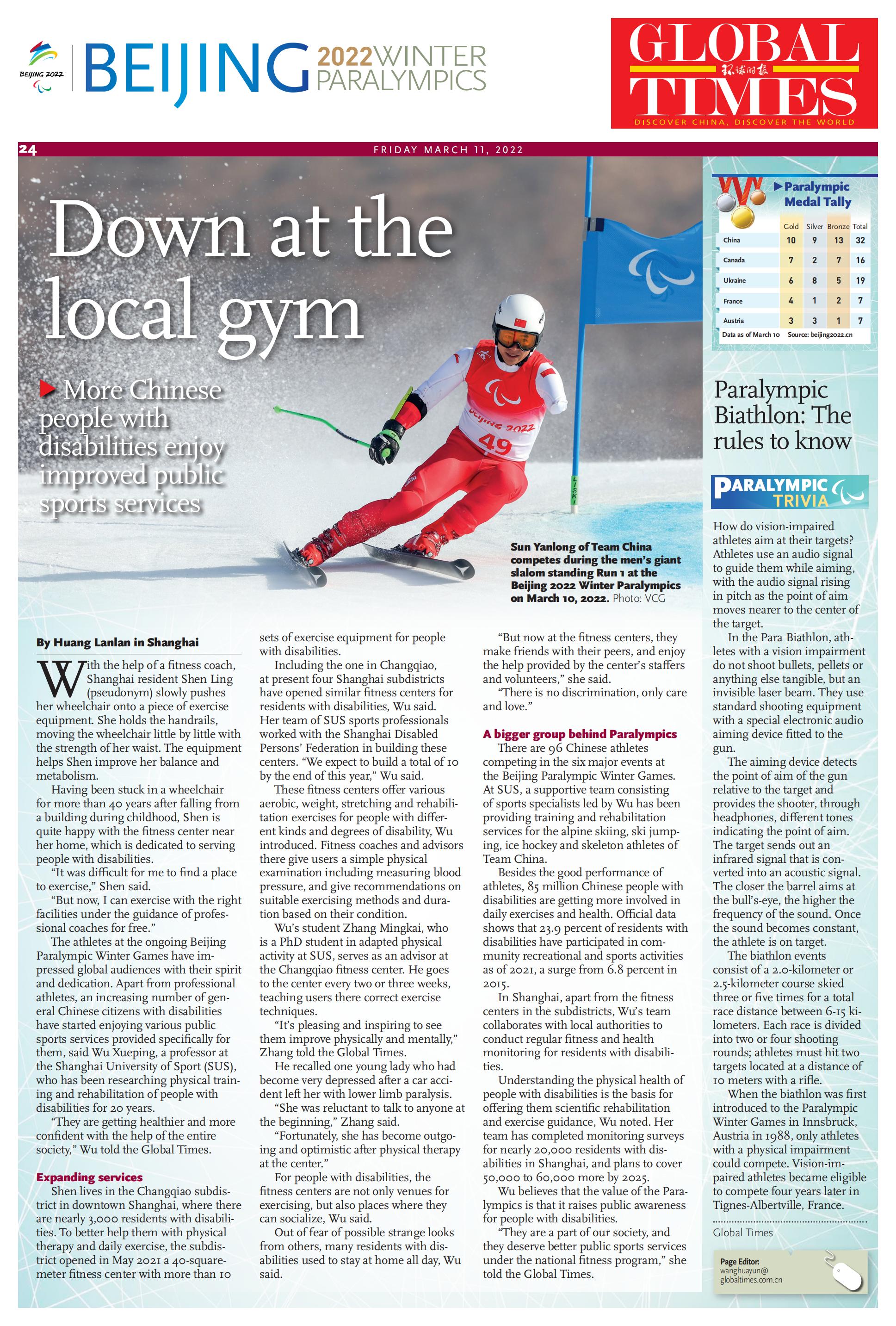 Global Times | More Chinese people with disabilities enjoy improved public sports services