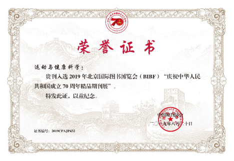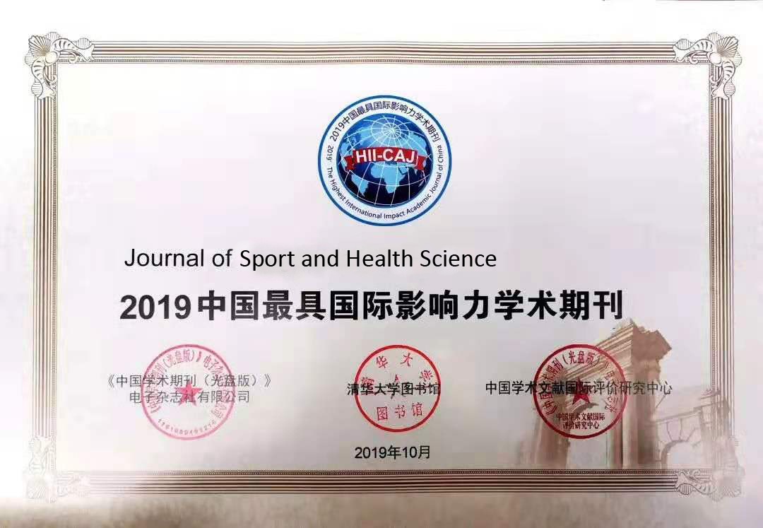 风雨九载,硕果累累。作为我国唯一一本同时被SCI和SSCI收录的期刊,《运动与健康科学(英文)》曾获得“中国百强科技期刊”“中国最具国际影响力学术期刊”(2015-2019年连续在2000余种中国人文社科期刊中排名第一)等称号,2017年入选中宣部等四部委联合主办的“砥砺奋进的五年”大型成就展,2019年入选“庆祝中华人民共和国成立70周年精品期刊展”,2019年获得国家七部委“中国科技期刊卓越行动计划”重点期刊建设项目。