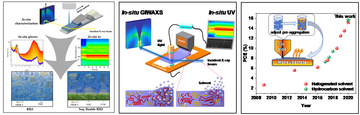 08-20有机太阳能电池因为其柔性、质轻、可以溶液法加工等特点长期以来受到广泛的关注。得益于非富勒烯受体的快速发展,有机太阳能电池单节效率已经突破18%。然而目前高性能的器件大多通过实验室中小面积旋涂成膜制备得到,为了进一步适应商业化应用的要求,发展大面积印刷加工技术迫在眉睫。狭缝挤出成膜结合卷对卷加工是最有望实现有机太阳能电池大面积印刷的技术。不同于旋涂加工的溶剂快速蒸发成膜过程,加上剪切力的作用,印刷加...