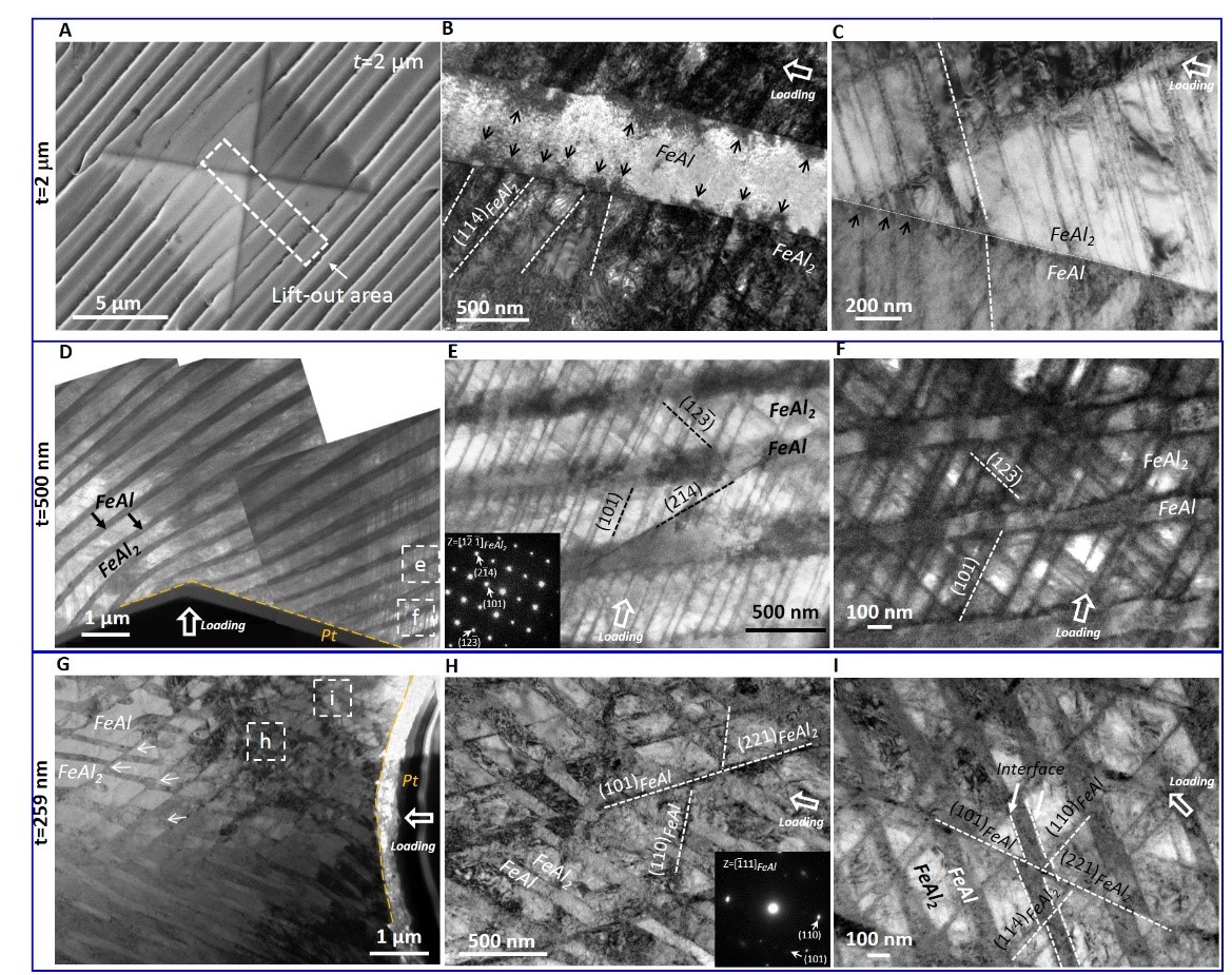 09-25Fe-Al合金兼具轻质、高强度、优良的耐磨性能和抗腐蚀性等优点,是极具潜力的极端环境轻质金属结构材料。然而,室温下的脆性极大地制约着Fe-Al合金的制备加工与大规模应用。通常,Fe-Al合金的脆性随着铝含量的增加而增加,当铝含量增加到40 at.%以上时,其韧脆转变温度急剧升高至800℃,这使得Fe-Al合金中更为轻质的富铝合金的应用受到了很大制约。近日,冰球突破豪华版官方网站微纳中心韩卫忠教授课题组制备了在室温下具备良好塑性变形能...